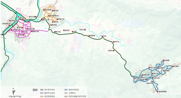 规划重点打造“五养归谷,四意休闲”的产品体系。五养即温泉养颜,膳食养生,运动养体,山水养性,文化养心;四意即乡、野、田、瑶。依托一枝·五叶,重点打造百里画廊、荷香膳养谷、禅农颐养谷、桃花温泉谷、森林桃源谷和竹海瑶乡谷。