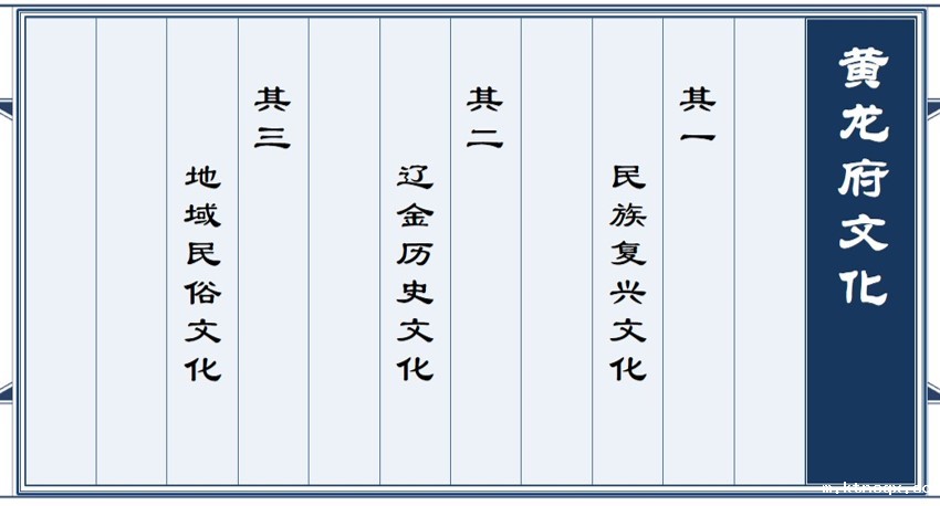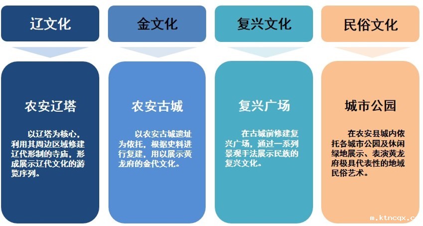 根据习近平同志在“十九大”报告中作出的重要指示:“文化是一个国家、一个民族的灵魂。文化兴国运兴,文化强民族强。没有高度的文化自信,没有文化的繁荣兴盛,就没有中华民族伟大复兴。要坚持中国特色社会主义文化发展道路,激发全民族文化创新创造活力,建设社会主义文化强国。”规划秉承时代传承原则和中华民族原则,形成了历史文化梳理、发展脉络分析、文化凝练提升和时代创新应用四大板块。首先对黄龙府的历史文化进行了细致的梳理,根据各类资料及现场调研情况梳理其历史沿革、文物遗迹和民俗艺术。其次从地脉、文脉、族脉和史脉四个角度分析了黄龙府的发展脉络。