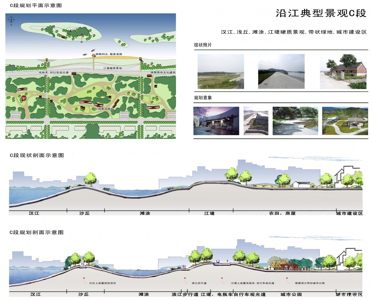 汉江干流在襄樊市境内流长195公里,汉江风光带从西往东贯穿襄樊市,涉及汉江水体本身及襄樊市沿汉江两岸的26个乡镇。规划在深入研究汉江风光带的旅游发展背景条件、旅游市场情况的基础上,将汉江风光带分为核心区、发展区、联动区三个层次。核心区,包括沿汉江两岸的主要公路之间的区域,主要开展以汉江水体和自然生态为主题的各种旅游活动;发展区,包括襄樊市境内的汉江沿岸的主要旅游景区,由汉江及两岸交通进行串连。联动区,包括发展区以及汉江在襄樊市境内的主要支流所流经的区域,为汉江旅游的纵深发展区。