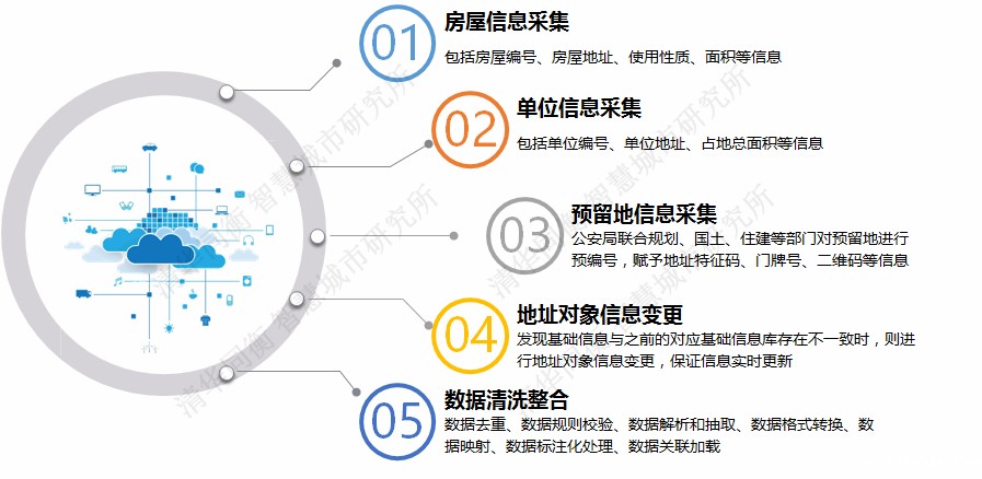 结合研究特点,项目采用的主要研究思路为从五个理论维度及三个城市空间维度进行综合研究的方法。其中五个理论维度包含:政策分析、技术分析、数据分析、安全分析和社会环境分析,及三个城市空间维度的分析:物理空间、数字空间及社会空间。旨在通过基于标准地址的城市数字空间体系研究,以物理实体标准地址为基础信息,通过与个人、社会组织、管理机构的日常社会活动数据进行关联,在城镇化发展宏观和微观层面提供真实科学的数据支撑。以物理门牌信息为基础的城市空间数据体系能够在不同的行政空间维度对人口迁移活动、产业转移济活动、资源变化等进行关联数据的统计分析、科学计算,为区域化、城市群的健康可持续发展提供宏观的分析和决策支持。