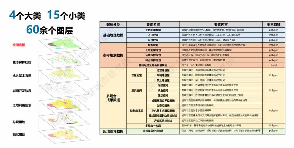 面向各类专题数据资源,统筹规划、国土、环保、林业、发改等各个委办局的规划数据,构建包含基础地理、参考规划、多规合一成果和用地差异分析在内的四大类多规合一数据库,从而形成全方位“多规”专题数据管理与统一利用体系;