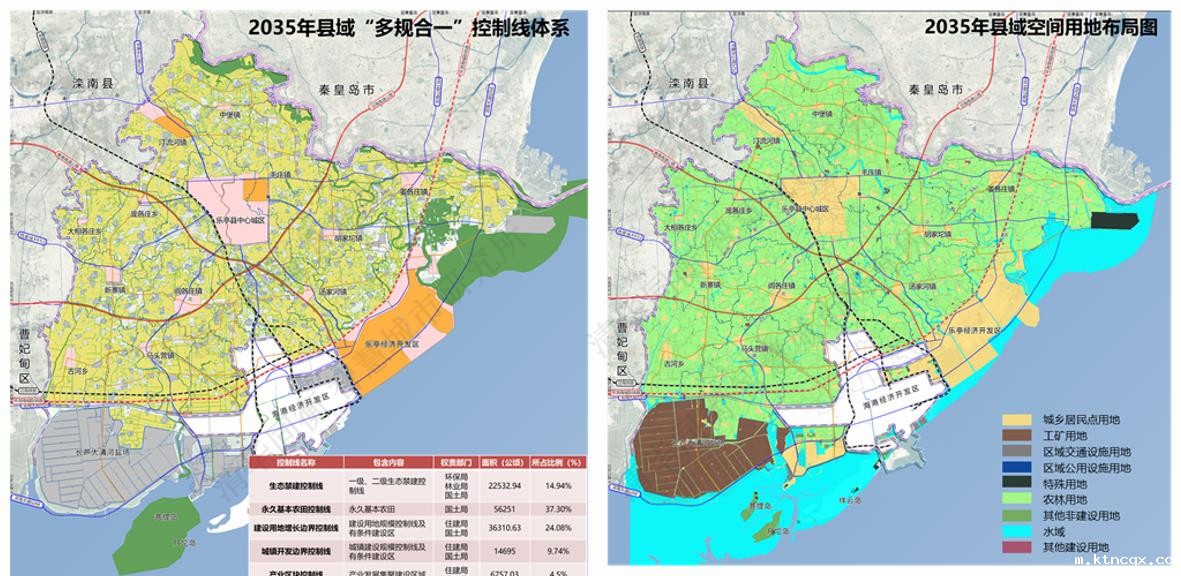 从可持续发展的角度,根据乐亭县本底条件,制定空间管控体系,严控县域生态底线,划定禁止建设区、限制建设区和较适宜建设区三类管控区,形成空间管制“三区”,从县域整体层面对乐亭县域空间进行综合引导、协调和调控,实现县域要素整合和资源调配。此外,按照管理事权对乐亭县的空间各类要素进行梳理,划定生态控制线、城镇开发边界控制线、建设用地增长边界控制线、基本农田控制线和产业区块控制线共五类控制线,以控制线体系统筹空间及事权,并作为基础的信息数据整理入库,设定管控各线的主导部门与参与部门,明晰对各类空间要素的管理责权与管理范围。