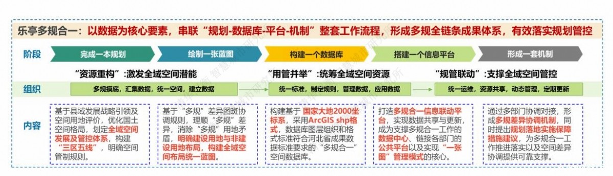 项目以空间规划各类数据为核心要素,串联“规划整合-数据库建设-平台搭建-机制优化”整套工作流程,形成“多规合一”全链条成果体系,强化规划管控,探索构建地方空间治理体系的乐亭实践经验。