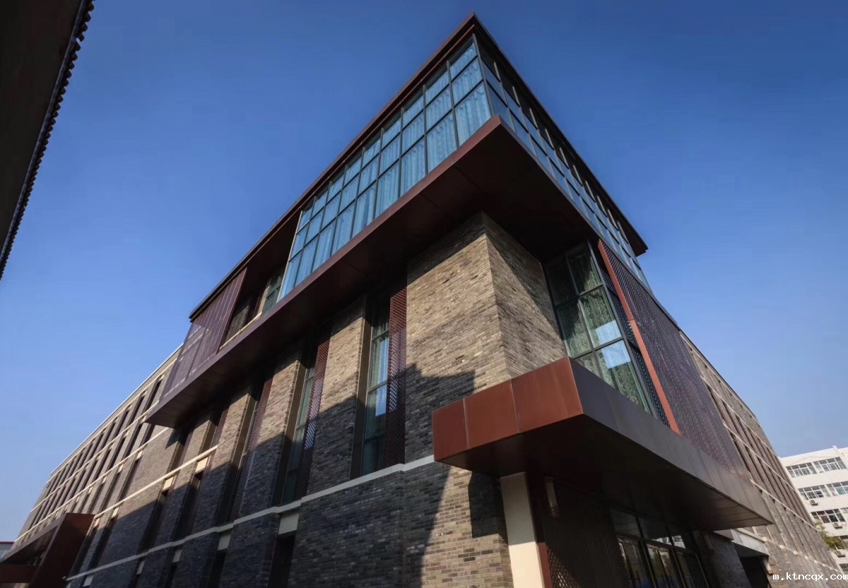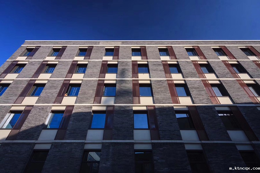 本项目所处地段位于传统建筑与现代建筑的交汇地带。设计中以现代中式的手法、传统青砖墙与现代铝合金装饰遮阳板结合,从城市肌理、风貌控制、高度控制等方面对保留建筑群及新建建筑整体进行梳理优化,实现了整体风貌上从传统到现代的良好过渡,成就了文物建控地带一组合而不同、新颖不张扬的建筑。