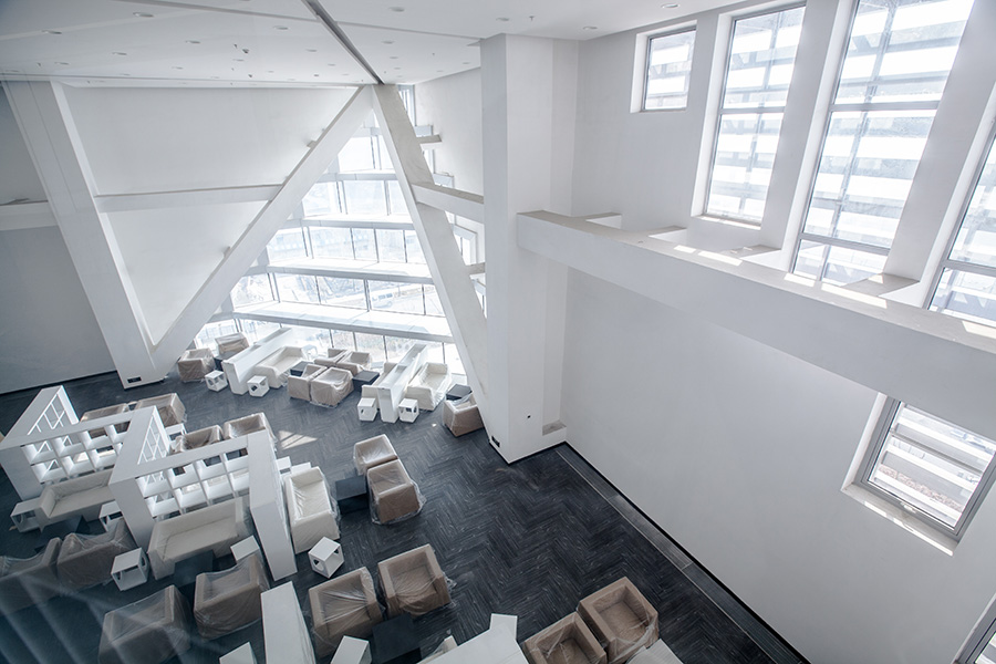 一期新建综合训练馆建筑高度18米,地上5层地下1层(局部有设备夹层),主要功能包括训练馆、学生宿舍、运动员住宿、餐厅、厨房及门厅等辅助功能。新建建筑建筑面积17850㎡,其中地上13130.14㎡,地下4719.86㎡。