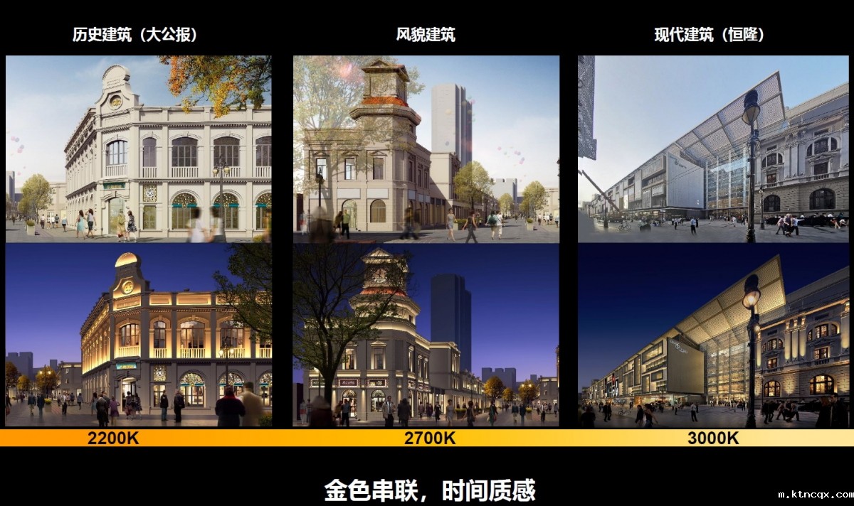 (二)综合提升:建筑设计、广告牌匾与夜景亮化整体设计。针对和平路现状牌匾品质低劣、老子号文化特色难展现,夜间照明杂乱,灯光效果欠缺的问题,在设计中以“建筑打底、夜景勾勒、牌匾点睛”的目标,采用多专业协作的模式,全面还原了百年金街雅致精细的生活记忆,充分展现出繁华富丽的商业文化。
