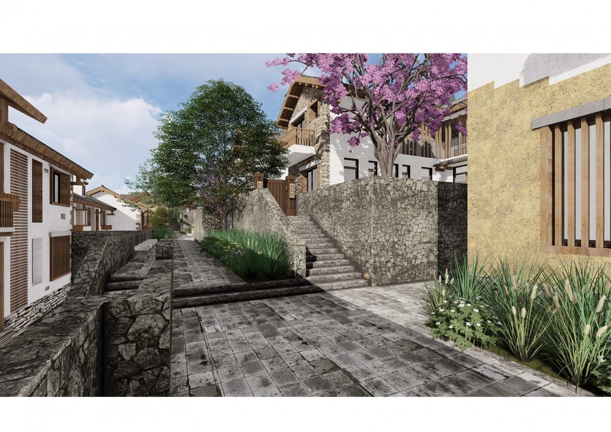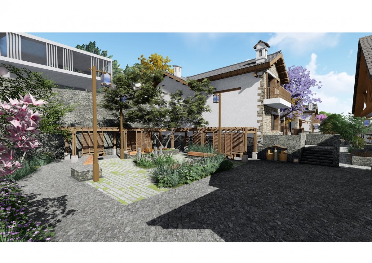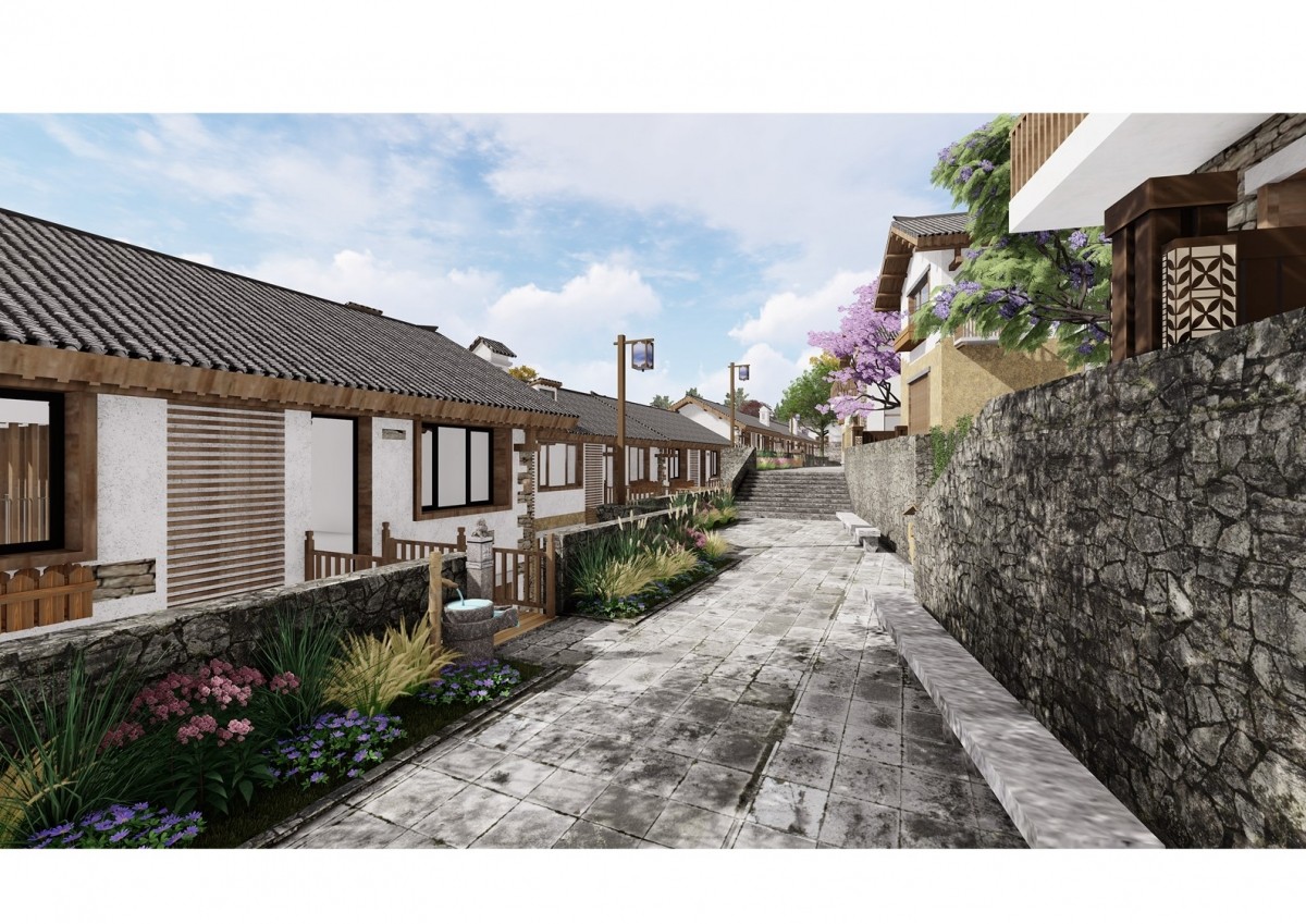 在建筑设计上,秉承本地乡土文化,吸取传统精髓,又有浓缩与简化,强调美学与可实施性的平衡。以传统院落式民居为主要模式,采用当地建筑材料融合当地传统元素符号,打造具有当地特色的具有现代生活功能的新型舒适的升级版民居。