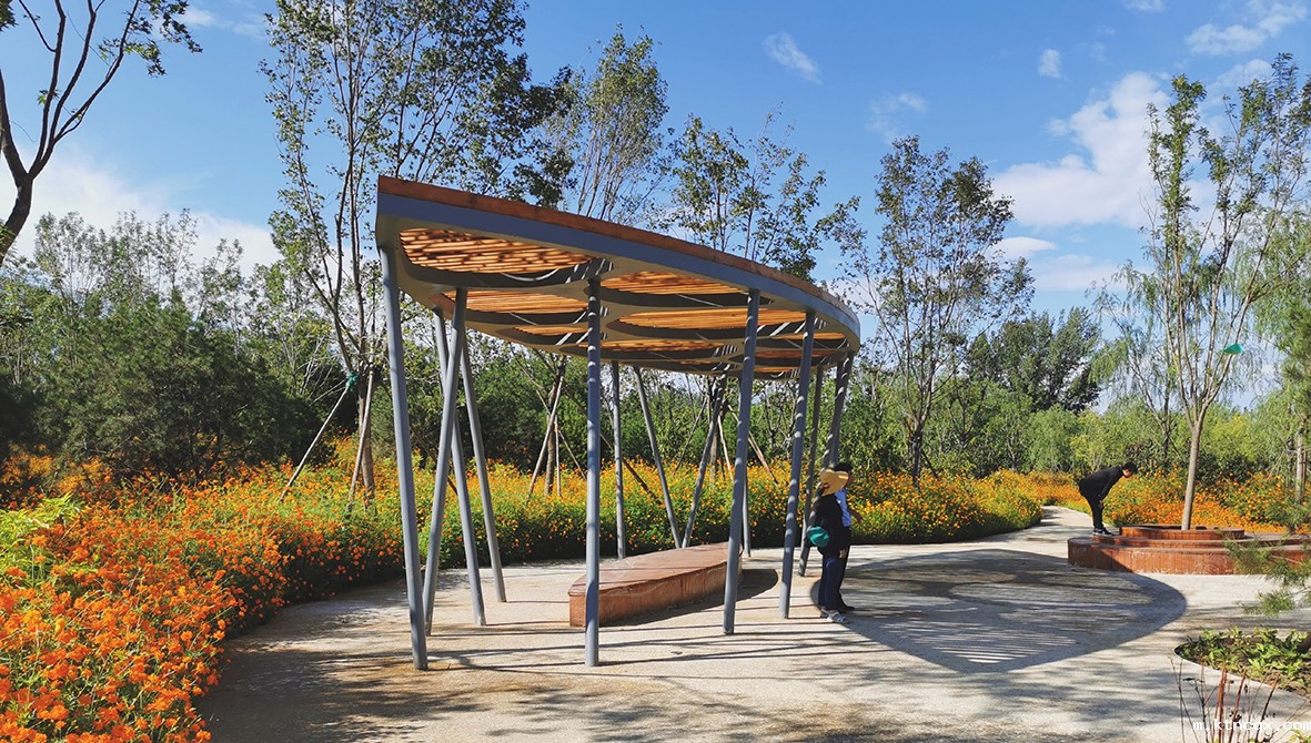 绿地边界以秋冬季相的风景林为主,与s路园林化的道路林带共同形成丰茂的森林景观,将明珠般的文化建筑环绕当中。绿地内部则综合绿心整体结构、文化建筑位置关系、原生树林等条件,布局8处林窗,打造弹性的林下多功能空间。城市绿心总体规划强调“以人为本”,要求既能提供优美的环境供人们享受,又有产品、服务和文化设施为市民服务,让城市亲近自然、让市民享受生活。对应这一原则,文化区在儿童活动、生态教育、种植空间与服务设施等全方位均有细致的落位。