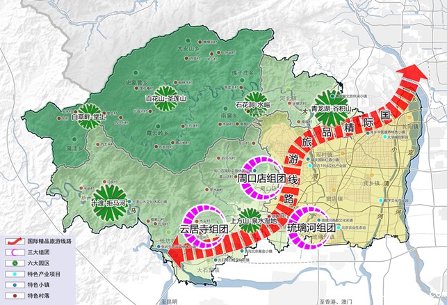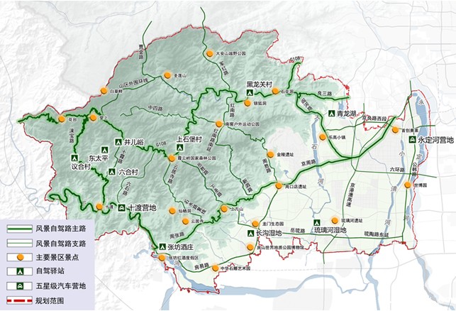规划立足北京总规对房山区提出的“三区一节点”发展要求,落实陈吉宁市长提出“打造首都西南精品国际旅游路线”的指示,配合《房山分区规划(国土空间规划)(2017年-2035年)》,建设历史文化和地质遗迹相融合的国际旅游休闲区。