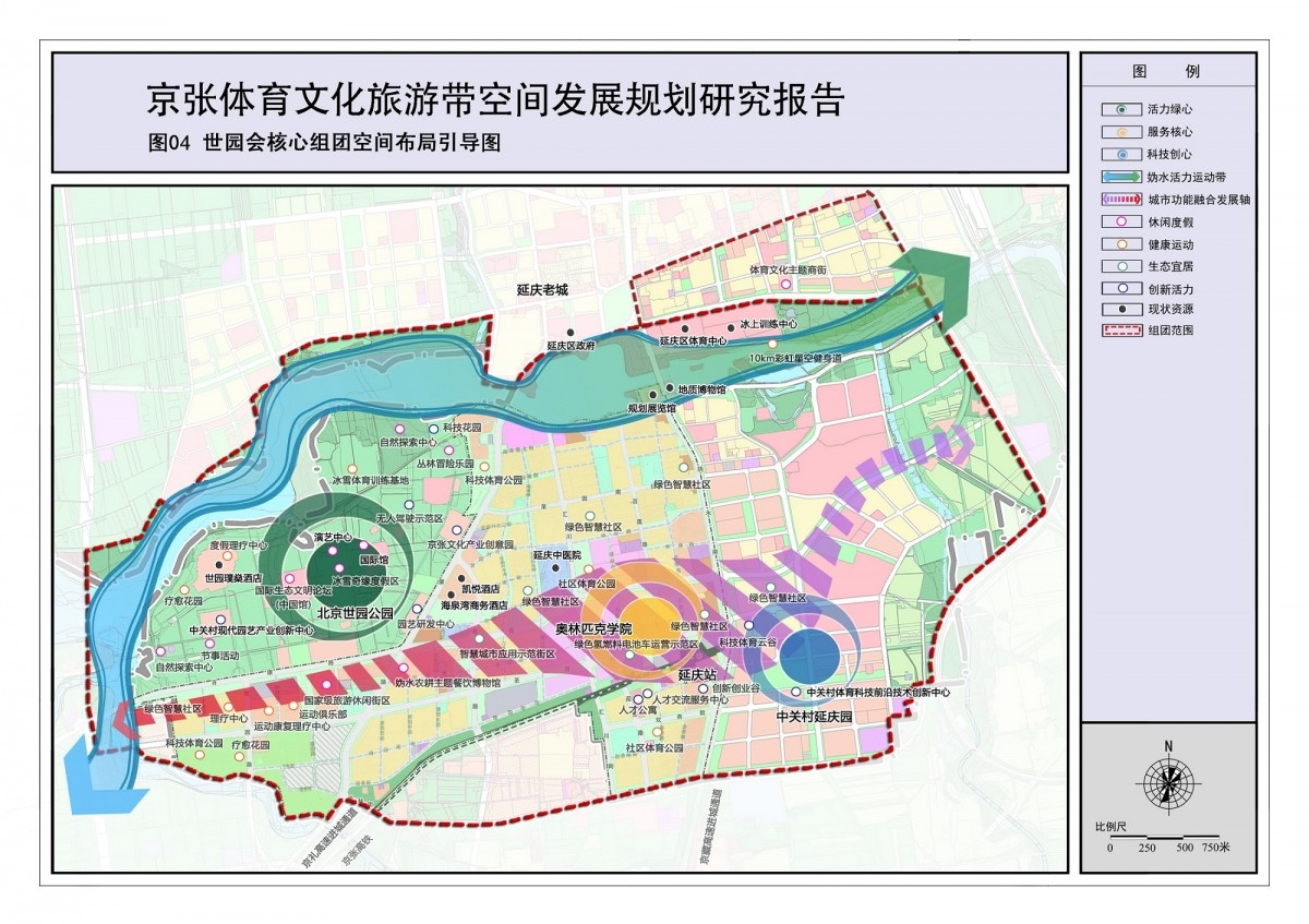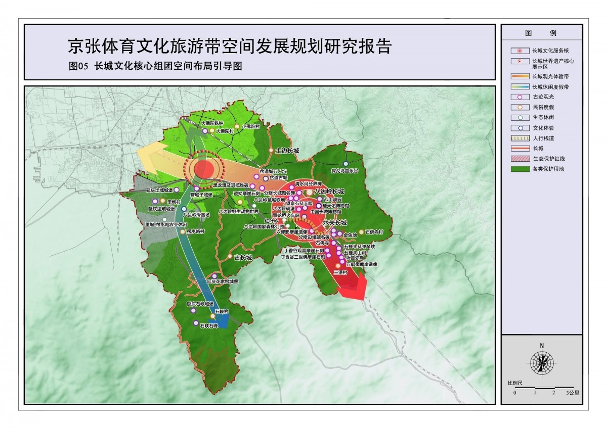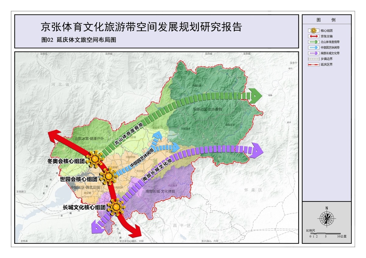 建设延庆区RBD,以冰雪度假、亲子休闲、生态康养、论坛会址、休闲购物五大场景,构建延庆区游憩吸引力。借助冬奥会发展契机,将张山营组团打造成为“国际生态体育交往中心”。强化长城文化IP,引入文创产业,推动城乡联动,将八达岭镇组团打造成为“国家文化地标”。最终提出十五个重点工程,成为京张体育文化旅游带发展的重要抓手。