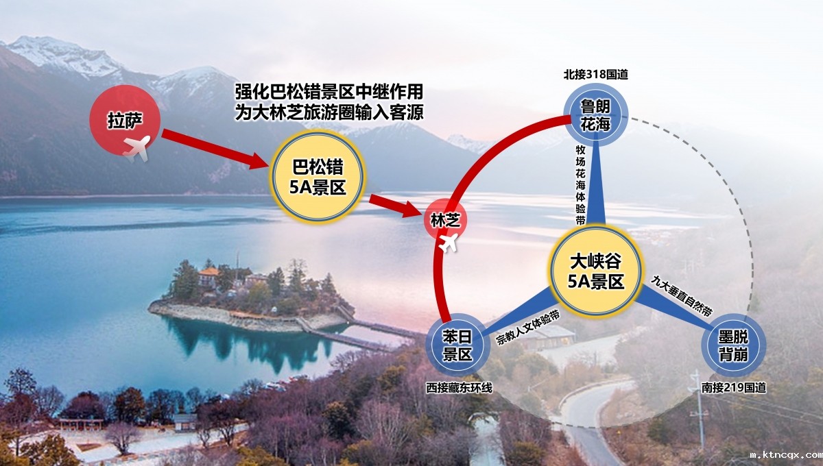 目前林芝旅游面临行长游短,尽端式结构的问题,规划提出打通318国道/川藏铁路至大峡谷景区联络线,贯通鲁朗 - 大峡谷 - 墨脱一线,进而重构大林芝旅游格局。