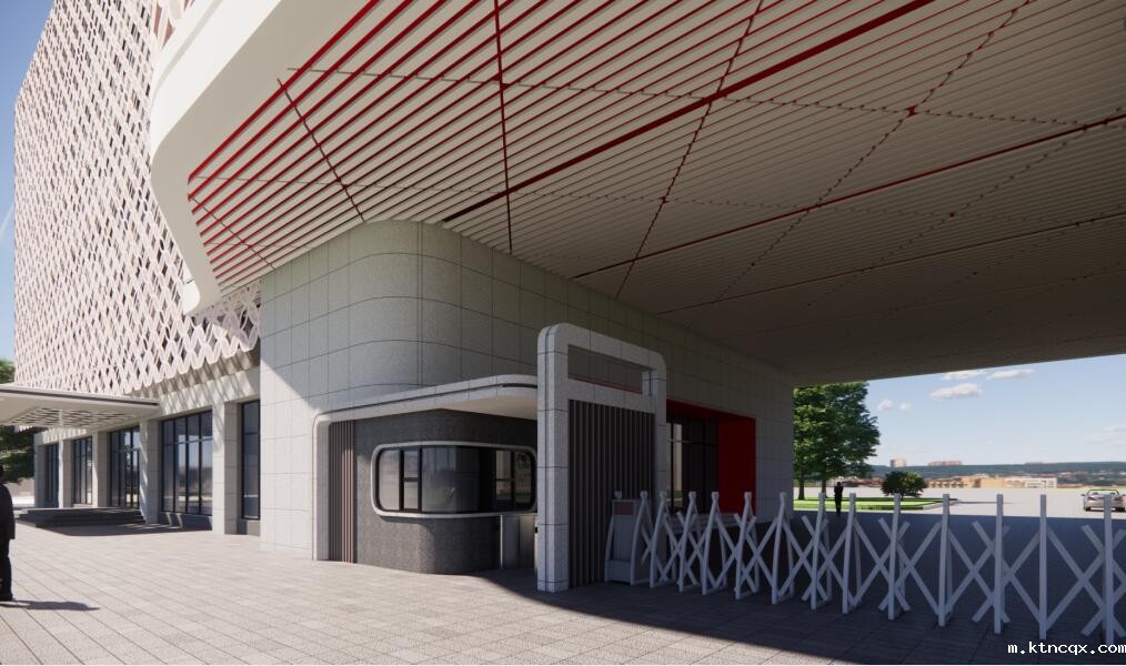 设计理念:以古代的美玉为设计元素,以方、圆交织为设计手法,通过穿孔铝板位置变化构建虚实关系;通过对穿孔铝板图案比例推敲及穿孔率的研究最终形成外立面形象。