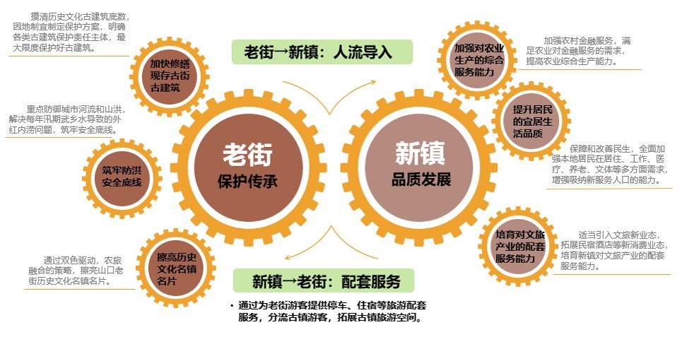 策划以“赣湘鄂边古镇文化度假目的地、赣北区域红色文化研学基地”为总体定位,打造“工农革命军建军编师地、赣北百年商贸第一镇”,以“老街+新镇”双核带动、“红色+古色”双色驱动、农文旅融合三大策略引领山口镇的保护与发展。修复后的山口镇作为江西省古镇修复带动乡村振兴示范区、赣北区域红色文化研学基地、赣湘鄂边“微旅游”度假目的地,将成为中国历史文化名镇传承与发展新标杆。