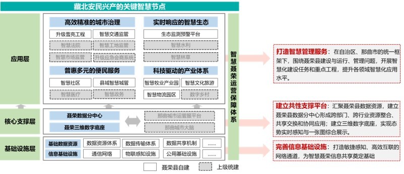 融入更大格局:面向聂荣建设“四县一地”的目标任务,不仅要聚焦自身特色资源建设示范县,还要成为藏北和自治区的重要节点和展示窗口,融入更大的区域发展格局,将聂荣打造为藏北安民兴产的关键智慧节点。