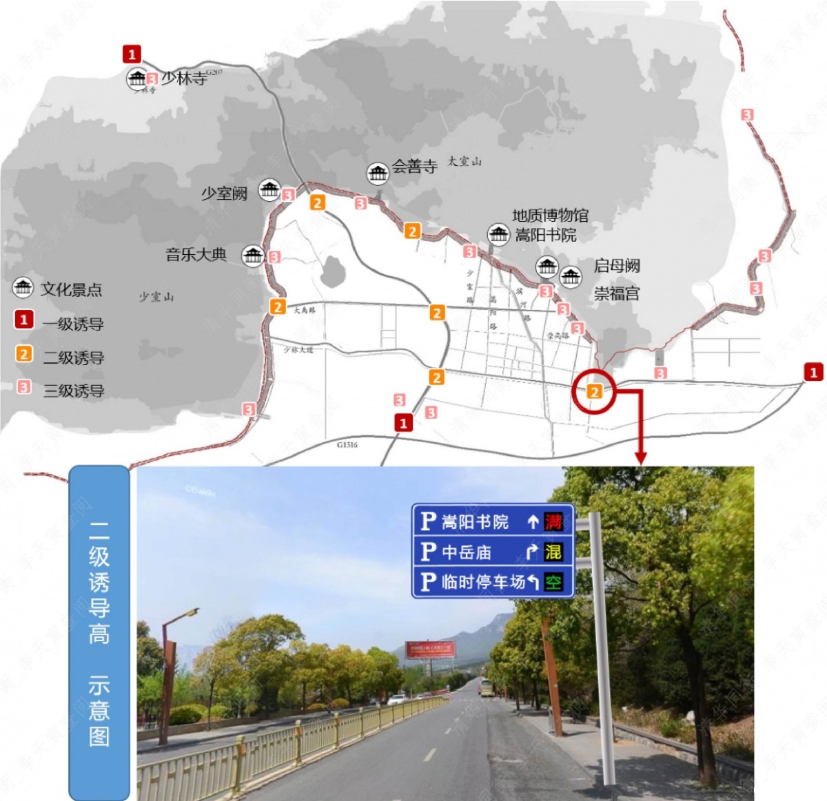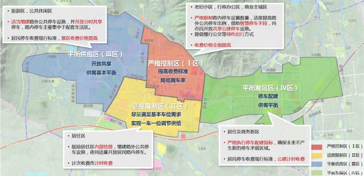 (2)编制旅游停车设施建设规划专题,在城市总体规划、城市控制性详细规划和本次城市停车基础设施建设规划基础上,根据嵩山少林风景区、嵩阳景区和中岳景区的停车缺口和