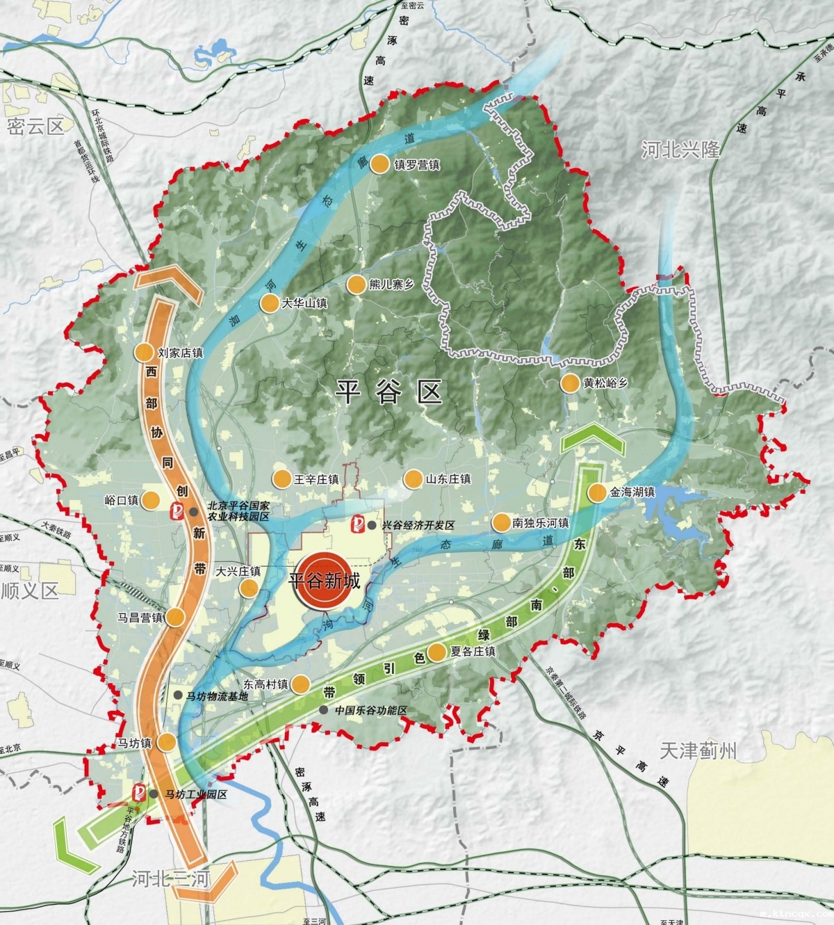 平谷区作为首都东部重要的生态涵养区,肩负着保障首都生态安全、坚持绿色发展、建设宜居宜业宜游的生态发展示范区的重大使命。本次规划站在京津冀协同发展的格局之下,多角度、多途径地落实北京新总规的各项要求。