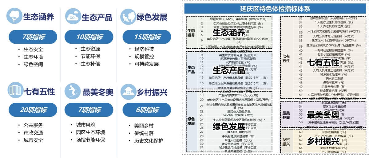 围绕“国际一流生态文明建设示范区”总目标,构建出“支撑绿色高质量发展”的系统性体检评价体系;细化体检指标体系,构建出以绿色高质量发展为导向的特色指标体系;以京津冀协同发展、冬奥、世园为核心,开展重点领域、重点地区深度体检。
