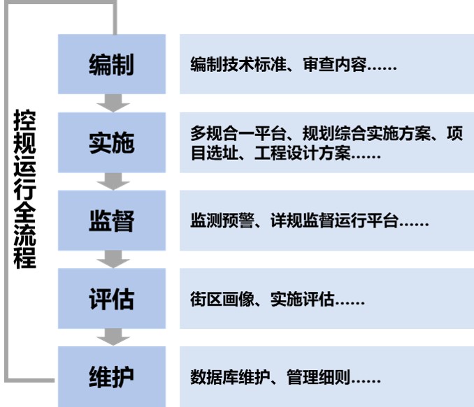 本次课题研究将总规实施监管层级下沉至社区,细化实施颗粒度;面向详细规划管理,完善编制、管理、审批、实施、监督评估全流程闭环管理。形成一整套完整的评估体系、技术方法和长效机制。