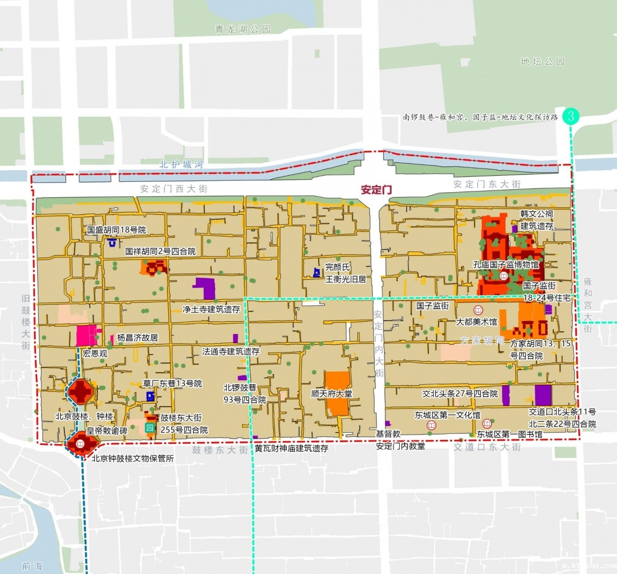 首都功能核心区是全国政治中心、文化中心和国际交往中心的核心承载区,是历史文化名城保护的重点地区是国家首都形象的重要窗口。为保证《首都功能核心区控制性详细规划(街区层面)(2018 年-2035 年)》(以下简称核心区控规)总体性及系统性管控要求的传导和落实,针对核心区32个街道编制街区控规图则及说明指引,其中安定门街道位于东城区西北部,街道规划范围约1.92平方公里。