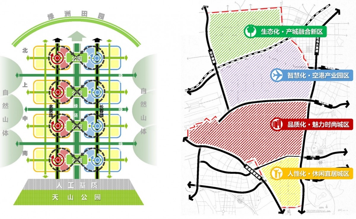 本项目位于乌鲁木齐市高新技术产业开发区,规划面积约123.77平方公里。项目针对高新区的创新企业及创意人才特色,从“空间需求导向、空间品质诉求、空间形象感知”三大角度出发,探索高新区空间品质提升的设计思路。