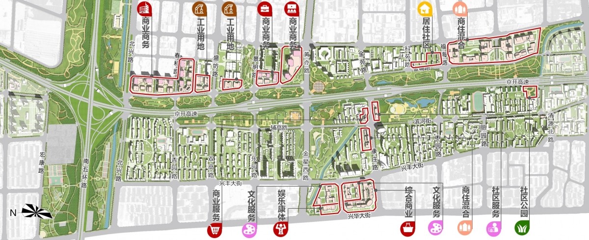 随着大兴国际机场启用及河北雄安新区建设,京开高速的对外联系职能愈发重要。本次规划区为京开高速公路穿越大兴新城区段、道路两侧各延伸约500米范围的区域,路段全长17.73千米,规划面积1932公顷。