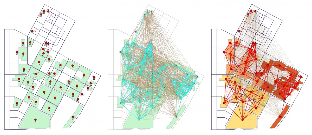 (1)自下而上识别生活空间单元:基于GIS模型算法模拟居民出行路径,对平均步行速度、道路建设条件、通行障碍以及用地布局进行综合测算,识别多个小区共同构成的“生活空间单元”。