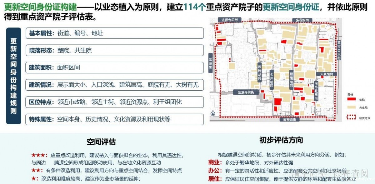 法源寺片区的更新工作,落实新时代首都城市战略定位,传承宣南精神,庚续士乡声华,居旧邸而晤前贤。厚植新时代青年的发展沃土,营造论道创新的文化平台,完善寓居文化的全龄保障,在全面推进中国式现代化西城实践上守正创新,以产业内核引导腾退空间利用方案,形成文化活化、产业迭代、空间增效、协同运营的历史街区更新时代答卷。