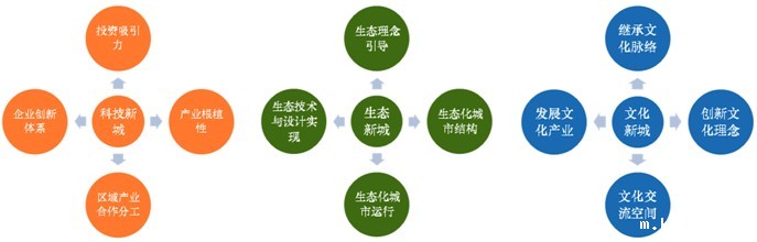 重点培育创新功能、集聚功能、孵化功能、示范功能和增长功能。通过面向区域、面向专业领域、面向本地网络、面向城市功能四个层面构建产业组织体系,建设宜居宜业新城。