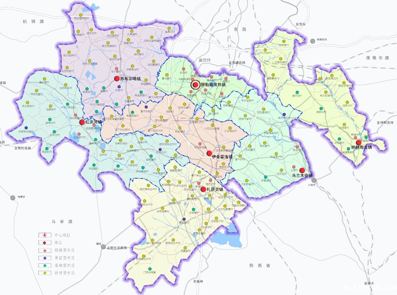 规划旗域形成“一心两翼”的城镇空间格局,以阿镇、札萨克、乌兰木伦作为区域发展核心。阿镇为中心辐射全域,阿镇和3个重点镇——乌兰木伦镇、札萨克镇、伊金霍洛镇构成城镇发展核心区;阿镇—苏布尔嘎—红庆河—札萨克、阿镇—纳林陶亥—乌兰木伦构成两翼。