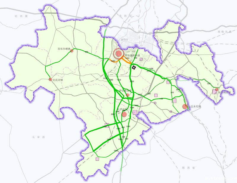 在旗域层面统筹水资源保护和平衡、市政基础设施建设,结合居民点体系,分级安排公共服务设施,按照伊旗强集中的发展思路,建立同城化交通体系,支撑全旗的通勤、产业服务和公共服务。