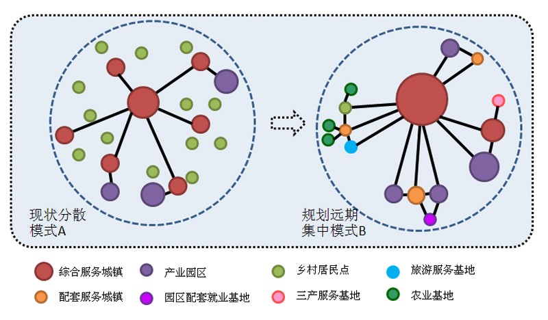 以资源环境保护和优化利用为前提,重点建设中心城区和镇区两级居民点体系,结合园区发展,形成集聚发展的中心城区、城镇、园区,规划居住人口向城区、城镇集中,就业向城区、城镇和园区集中,保留较少的村庄居民点,引导村庄人口集中就业和居住。
