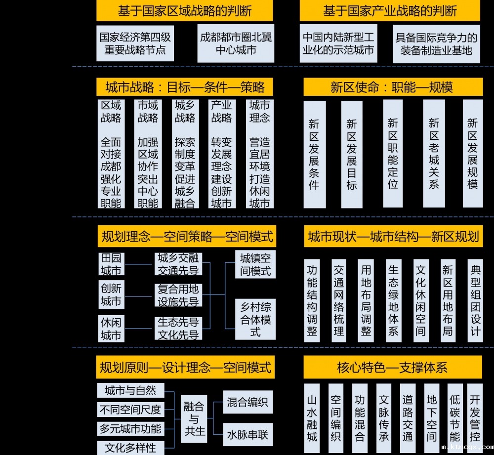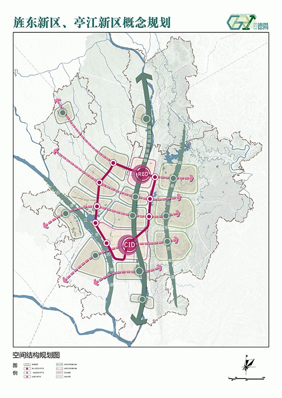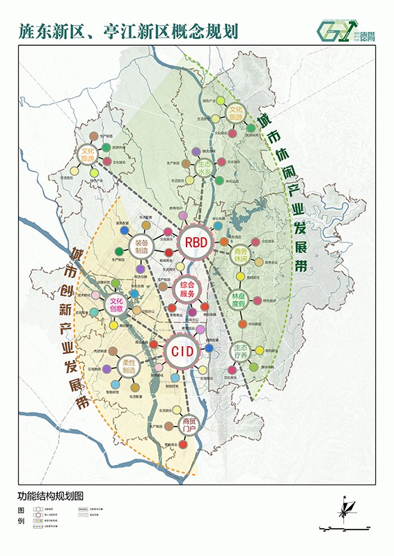 融入成都,一体发展:加快成德复合交通走廊打造,加速成德一体化发展;积极强化研发创新、技术孵化和休闲娱乐等区域专业职能。