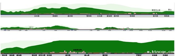 三轴:沿伊春河、乌马河、双子河形成的景观轴 ;