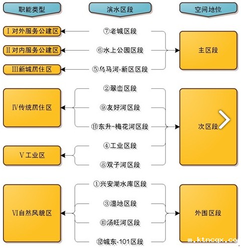 分段分类规划策略——根据不同片区在城市中的不同区位和职能,采取分段分类规划的策略。