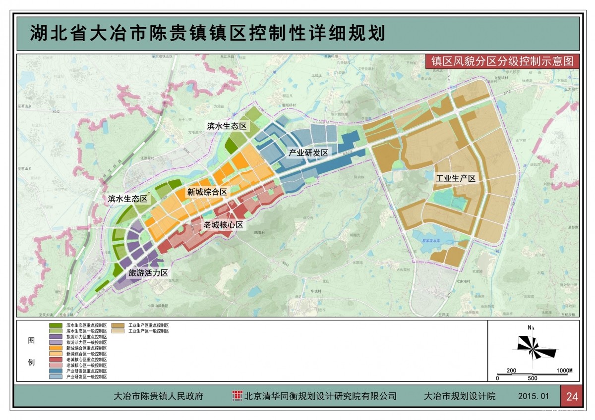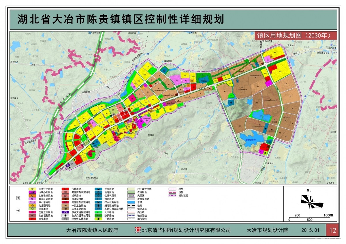 陈贵镇位于黄石大冶市中心腹地,地处武汉中南部的江汉平原与丘陵地区接壤的边界地带,属于湖北省矿产资源丰富的成矿区,拥有辉煌的采矿历史和文化。全镇土地总面积111.8平方公里,总人口约6.6万人。陈贵镇所在的大冶市是全国首批资源枯竭城市转型试点之一和湖北省城乡一体化试点市,为探索湖北省“四化同步”发展路径,落实陈贵镇“四化同步”城乡发展系列规划的意图,确保《陈贵镇镇区总体规划》的顺利实施,并且进一步提出规划管理及相关的控制标准,合理利用土地、提升城市基础设施水平、改善居民生活环境,使陈贵镇镇区的建设能够协调有序进行,适应新型城镇化发展的新要求,为湖北省小城镇发展做出示范。