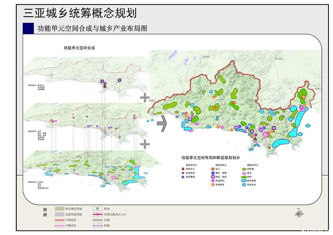 以功能单元为产业细胞实现城乡产业资源的整合,以功能片区实现城乡空间资源的整合,以主导区域建设实现弹性开发,是本次城乡统筹规划的基本思路。