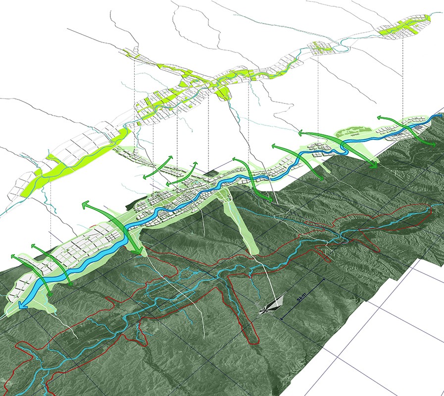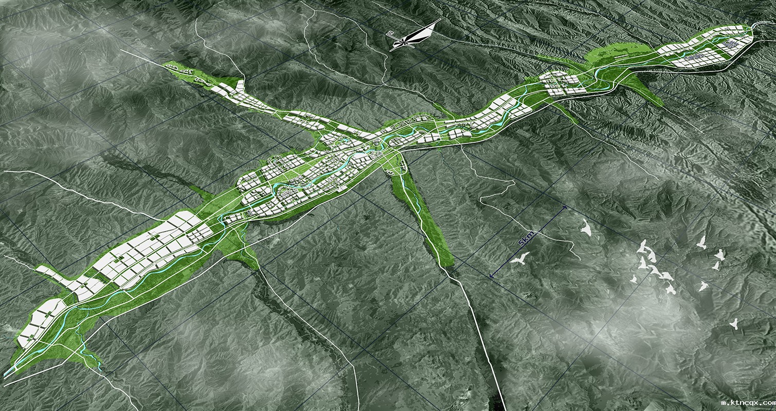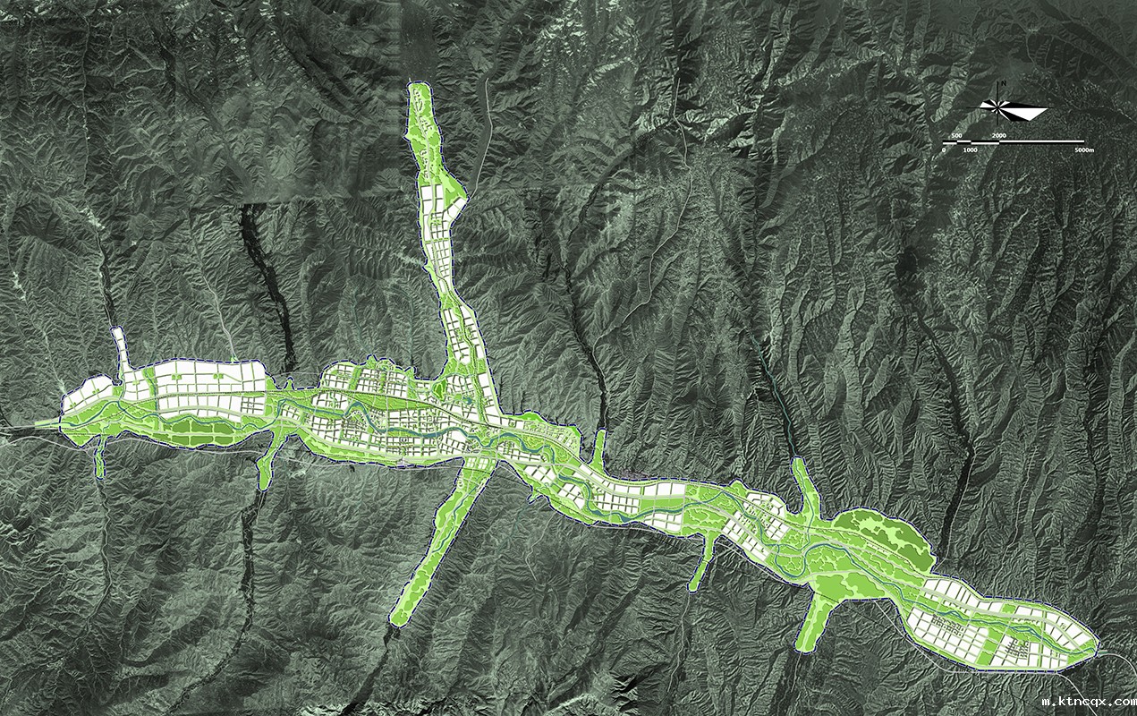 ●生态之城: 与自然和谐的可持续发展城市。乐都生态环境良好,城市建设一定要在尊重大山水环境的前提下进行,保护十字水系以及南北山脉的自然格局;各组团建设宜集中,组团间保持开敞生态廊道,每个组团规模适当控制;另外,乐都南北两山地势较高,是俯瞰全城的重要驻足点,滨水岸线曲折悠长,适合引入市民活动,增加城市滨水活力。