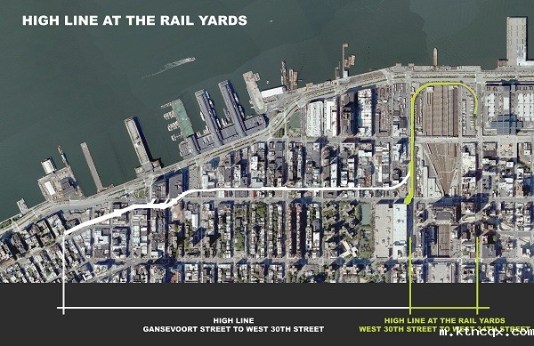 场地原本是一段高三十英尺的高架铁路,建于20世纪30年代,原是一条连接肉类加工区和三十四街的哈德逊港口的铁路货运专用线。采用高架形式是为了减轻地面交叉所带来的交通压力以及保障市民安全。高线于1980年功成身退,后废弃二十多年。2003年,开始面向世界征集重建高线的方案。最后,Field Operations景观事务所和Diller Scofidio Renfro建筑事务所的方案获胜。即,对高线进行包括园艺、工程、安全、维修、公共艺术等全方位改造,将这条高架线改造成一块“漂浮在曼哈顿空中的绿毯”,城市的文脉因此得以延续。