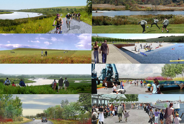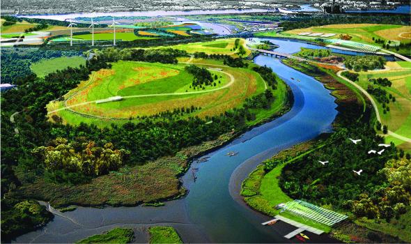 广阔的潮汐湿地和溪流、超过64.4km(40英里)的小径步道,以及娱乐、文化教育、体育运动等设施,并作为多种野生动植物、鸟类的栖息地。展示了环境保护与能源再生,人类与自然、教育与生活间的作用。
